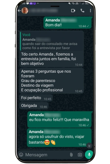 EXCELENTE Com base em 94 avaliações Dėbora PinheiroTrustindex verifica se a fonte original da avaliação é Google. Equipe super atenciosa, em especial Sabrina que me atendeu. Respondia super rápido e deu todas as dicas para que eu fosse aprovada. Super indico. Luis VaisTrustindex verifica se a fonte original da avaliação é Google. Tirei o visto da minha filha, minha esposa e o meu...fui super bem atendido pela Sabrina, excelente suporte! Everton Rodrigo MachadoTrustindex verifica se a fonte original da avaliação é Google. Foi muito importante contratar a Resolv, é um momento de muita ansiedade e expectativa, a Luciane foi um verdadeiro porto seguro, me passou confiança, orientou durante o processo e foi além, me tranquilizando e me tratando com total humanidade e empatia. Gianfranco GembriniTrustindex verifica se a fonte original da avaliação é Google. experiência excelente tudo atendido Leandro AraujoTrustindex verifica se a fonte original da avaliação é Google. Foi simplesmente satisfatório, tive o resultado que esperava . Gabriel HenriqueTrustindex verifica se a fonte original da avaliação é Google. Nos orientou desde o comecinho. Levamos varios documentos que sao importante na entrevista e fizemos uma simulaçao antes da viagem e todas as perguntas que fizeram pra nos no Consulado, ja tinhamos respondido com o pessoal, entao ficou tudo mais simples. Parabens pelo trabalho, recomendo muito! Daniel LobatoTrustindex verifica se a fonte original da avaliação é Google. Amanda me ajudou muito com meu visto. Praticidade e comodidade que me ajudaram a tirar meu visto rapidamente e sem surpresas. Mesmo morando em outra cidade, tive todo suporte e não precisei me preocupar com absolutamente nada, ela cuidou de tudo para mim. Obrigado! Vanessa AraujoTrustindex verifica se a fonte original da avaliação é Google. Excelente atendimento da Luciana Barboza, pessoa incrível. Profissionalismo e cuidado nos mínimos detalhes. Nos orientou em tudo e nos deu muita tranquilidade no processo. Conseguimos hoje o visto americano🇺🇲 e estamos muito felizes. Super recomedo, foi incrível. Muito obrigada a Resolv Visto e a Luciana! Gabriela ConsolaroTrustindex verifica se a fonte original da avaliação é Google. Experiência ótima com a Resolv! A Luciane sempre muito atenciosa e prestativa, se esforçou muito pra fazermos dar certo e deu! Gratidão imensa! Evilyn VieiraTrustindex verifica se a fonte original da avaliação é Google. Gostaria de expressar minha satisfação com o serviço prestado pela Resolv Vistos. Desde o primeiro contato, fui atendida com atenção e profissionalismo. A consultora Luciane Barboza tirou todas as minhas dúvidas de forma clara e eficiente, me oferecendo total suporte durante todo o processo. Graças ao trabalho da assessoria, meu visto foi aprovado na primeira tentativa. Recomendo fortemente o serviço a quem busca segurança e tranquilidade no processo de obtenção de visto!